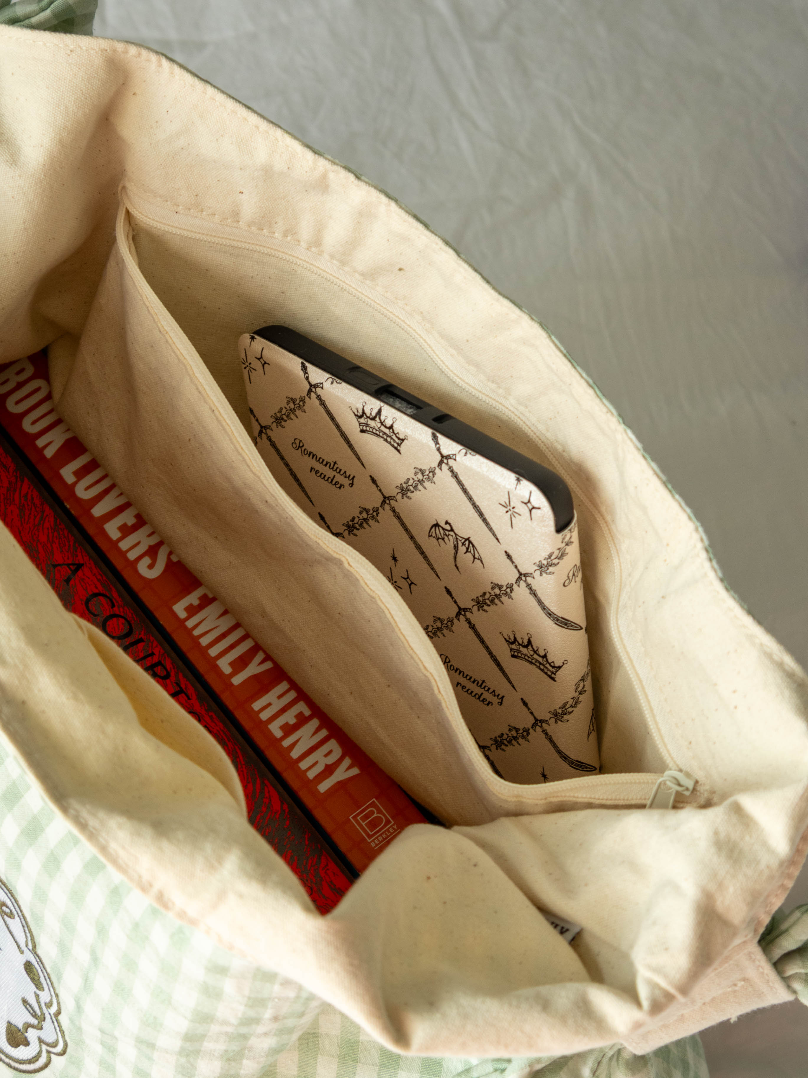 Carry your current read (and all your girly essentials) with this cute, gingham tote! Fits so many books for all your trips to your local bookstore, library, or cafe 🎀