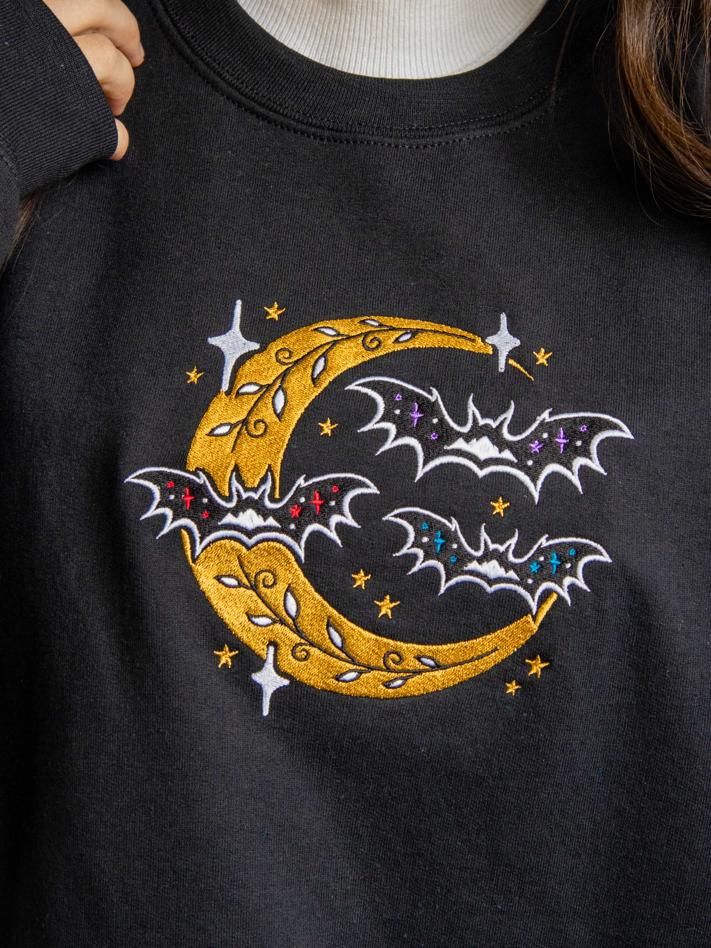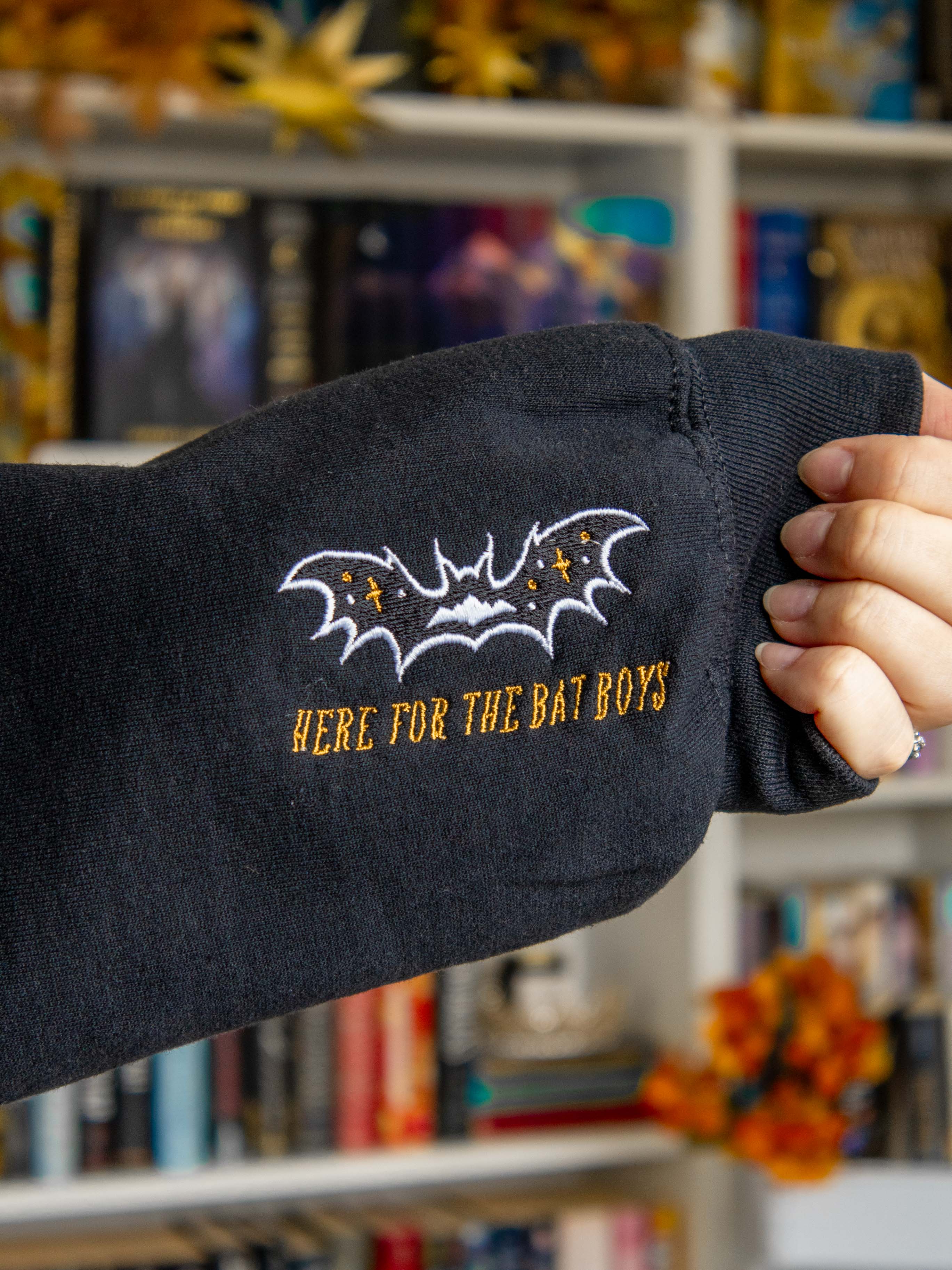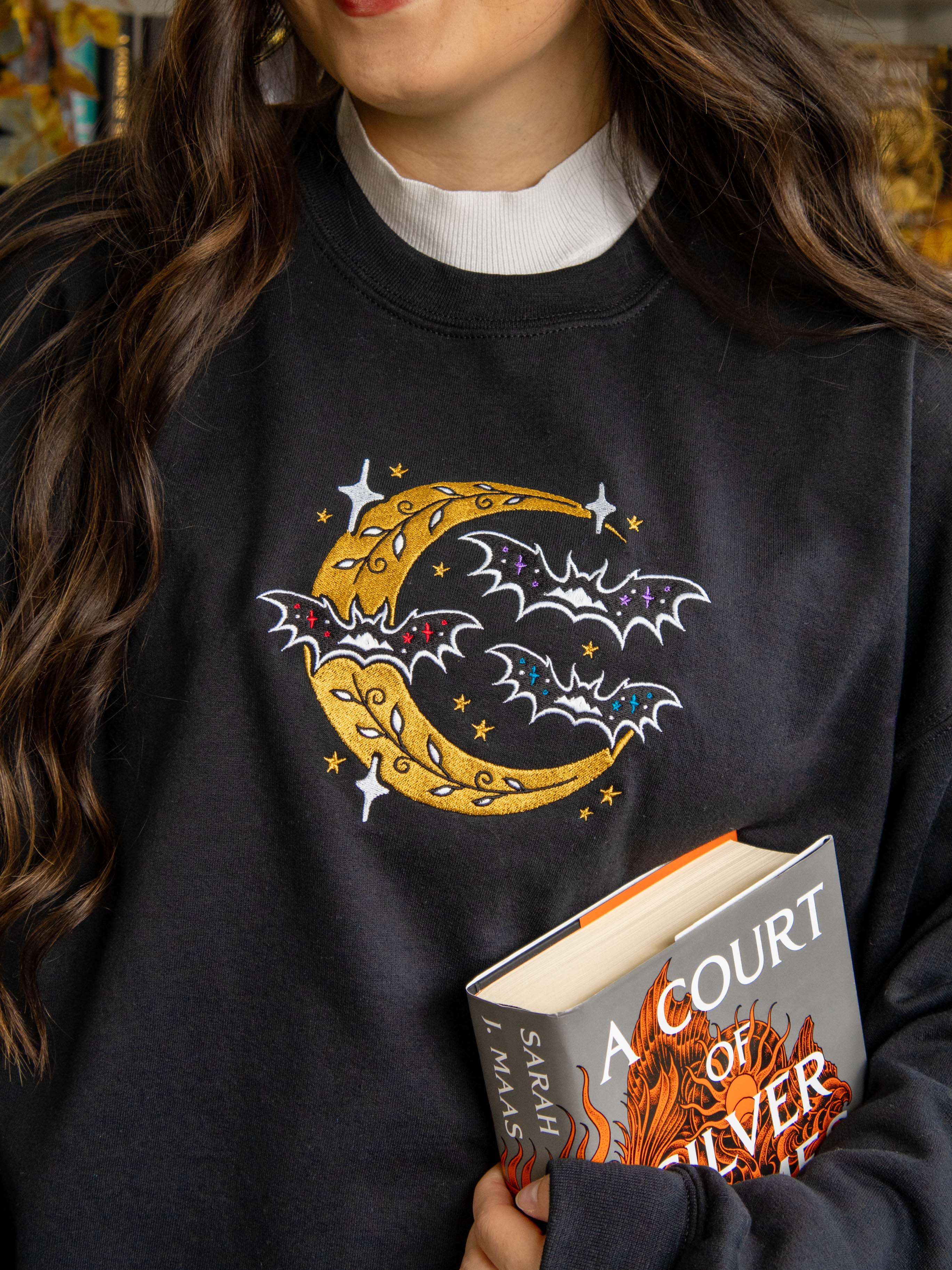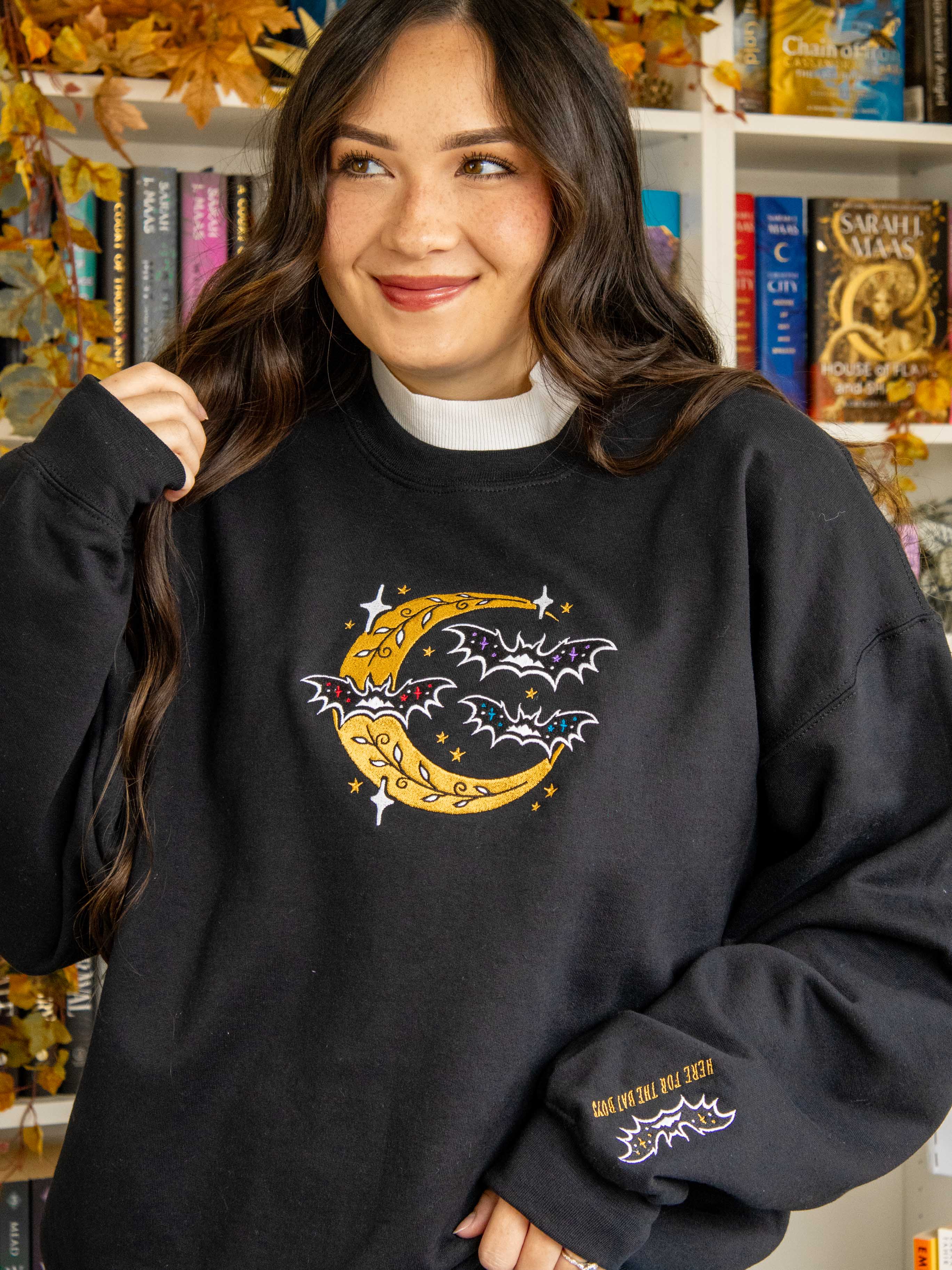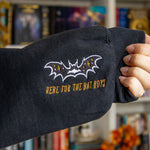 Subtle Bat Boys merch 🦇💜❤️💙 This embroidered sweatshirt is the ultimate if you know, you know ACOTAR merch!!! Featuring three bats on the front with Rhysand, Cassian, and Azriel's signature colors, plus Ramiel in the middle to tie them all together! Night court vibes + Spooky season = PERFECTION 😍