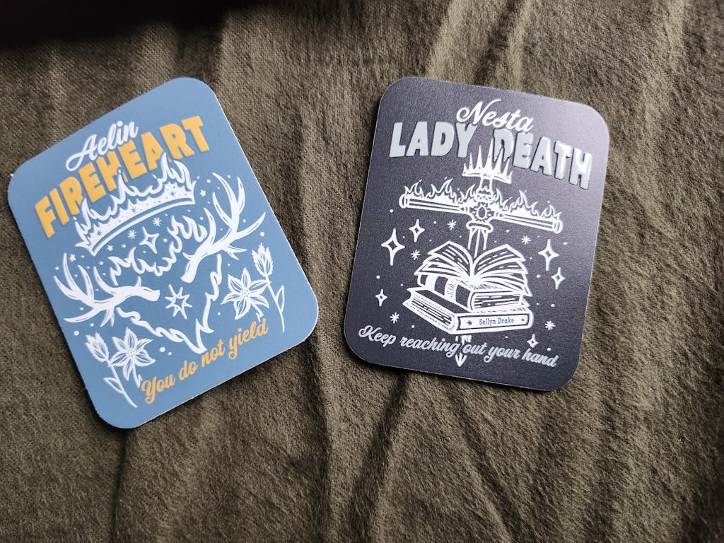 The art depicted on the products listed for sale is wholly original to me or to artists commissioned by me. Sarah J. Maas has not collaborated with me or with artists commissioned by me in any way in the creation of the art, and the traits of any characters depicted in the art are in no way based on any foreknowledge by me or an artist commissioned by me of the traits of any characters in future books by Sarah J. Maas.
