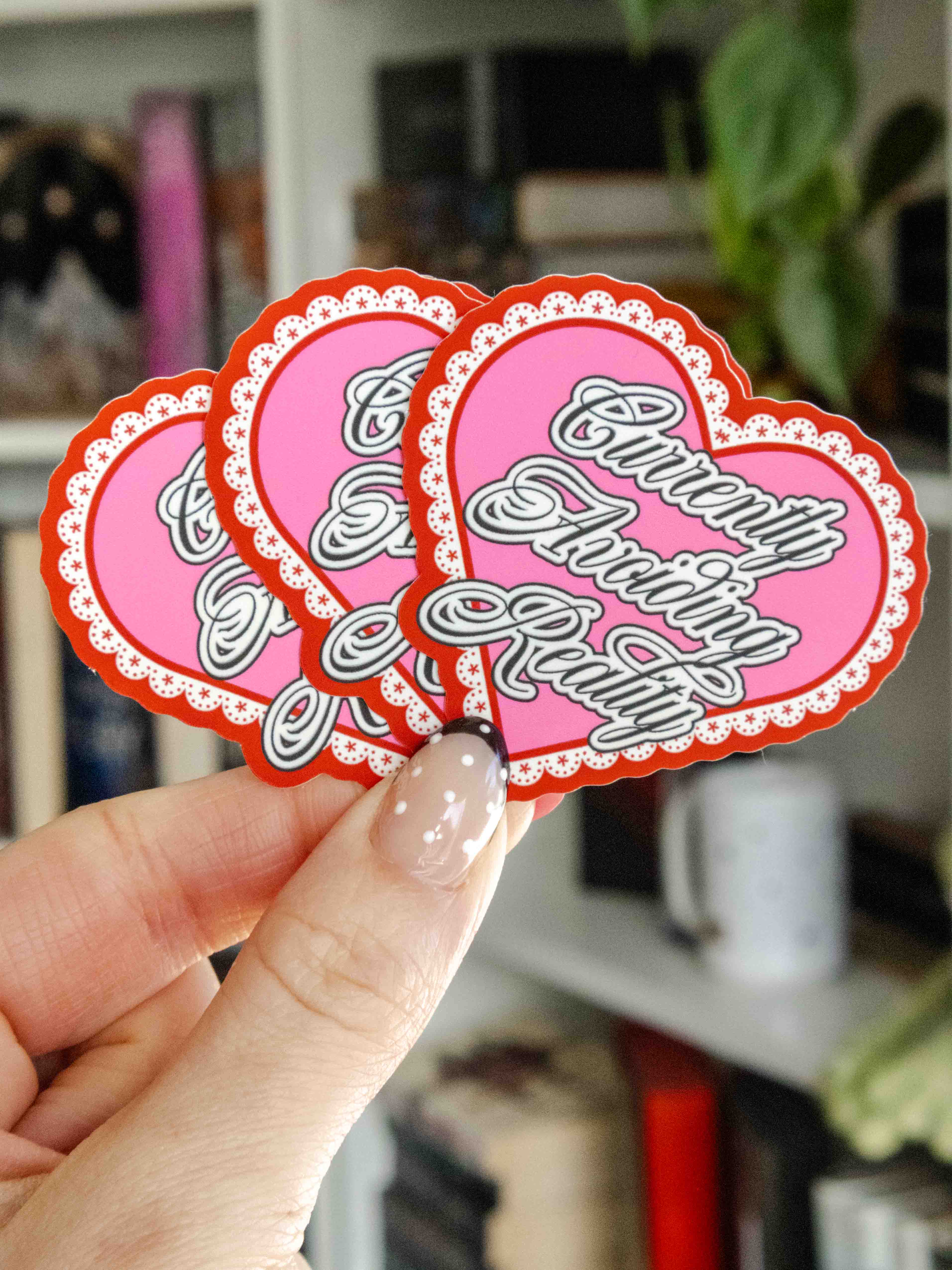 Our stickers are professionally printed and made with a waterproof adhesive, durable vinyl, and a UV protected laminate. Measuring approx. 2.3"x2.1", these stickers are the perfect size to decorate your kindle or water bottle with!