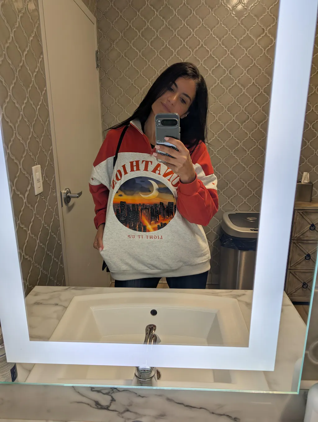 Model is 5'4" (typically a size 8/M) and wearing a size M/L. Fit is oversized, order your normal size for this boxy look! See size chart in photos for full measurements.